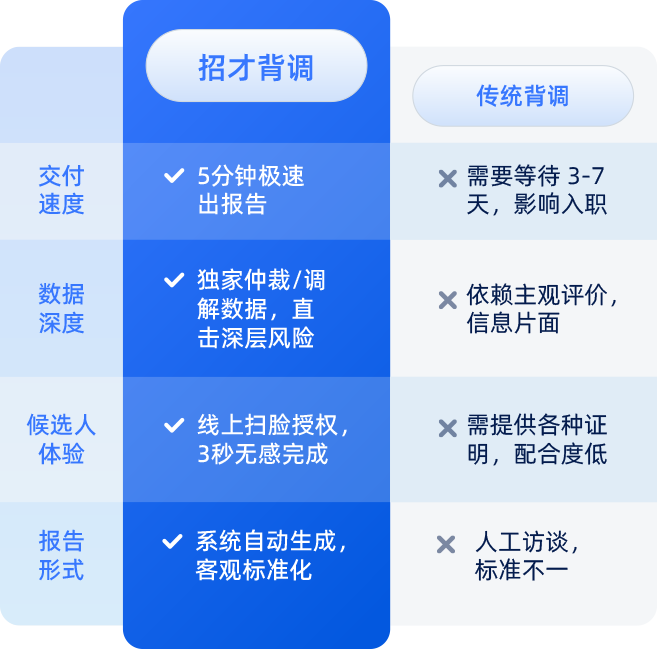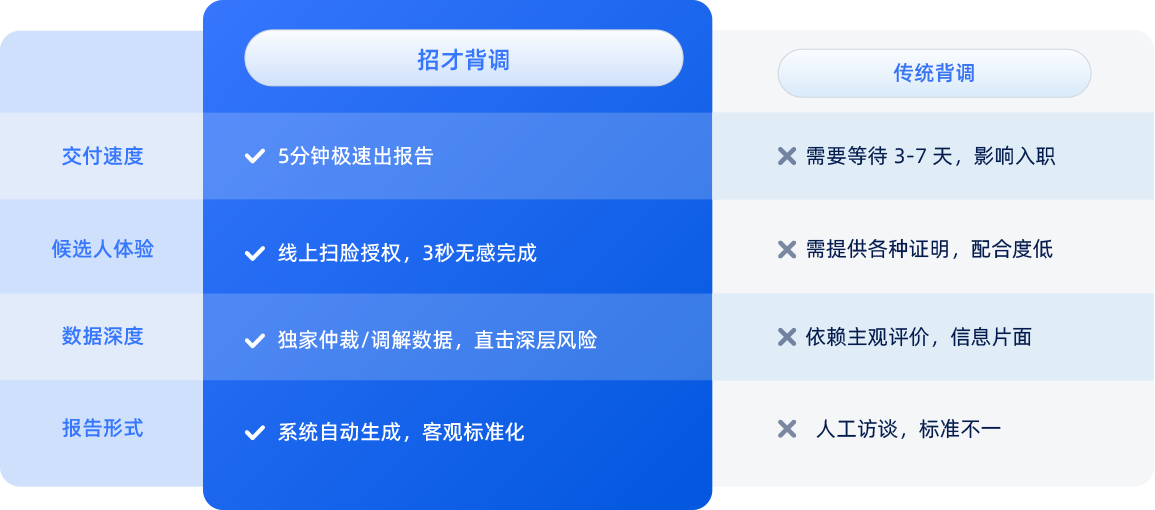 背景调查是指通过合法渠道核实候选人提供的个人信息、工作履历、教育背景等是否真实准确的过程。招才背调专注于客观事实的验证,不包含主观评价,既保证信息准确,又避免法律风险。