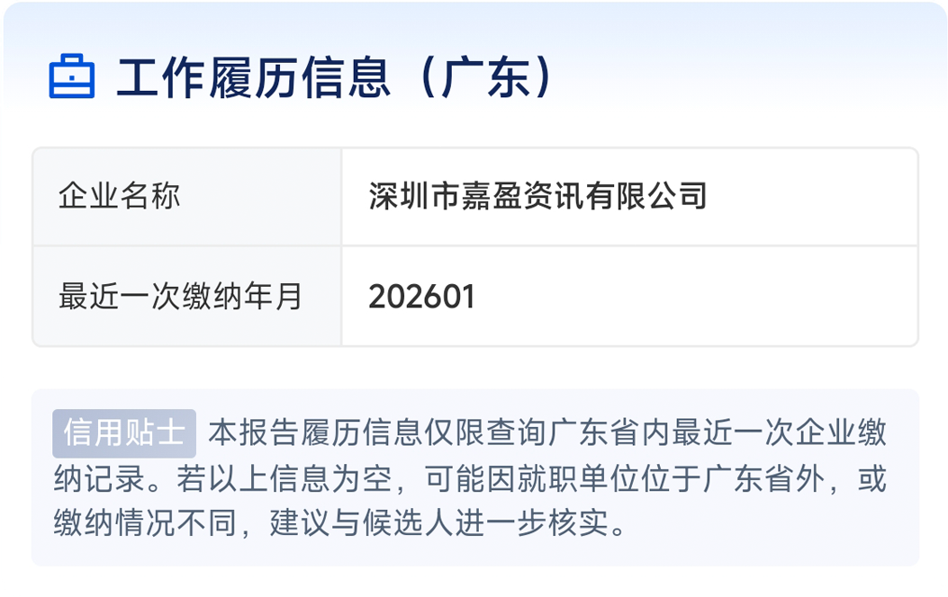 我们的背调报告包含身份信息验证、学历学位验证、工作履历核实等客观信息。根据套餐不同,还可能包含不良记录查询、金融违规记录查询等内容。所有报告仅包含可验证的客观事实。